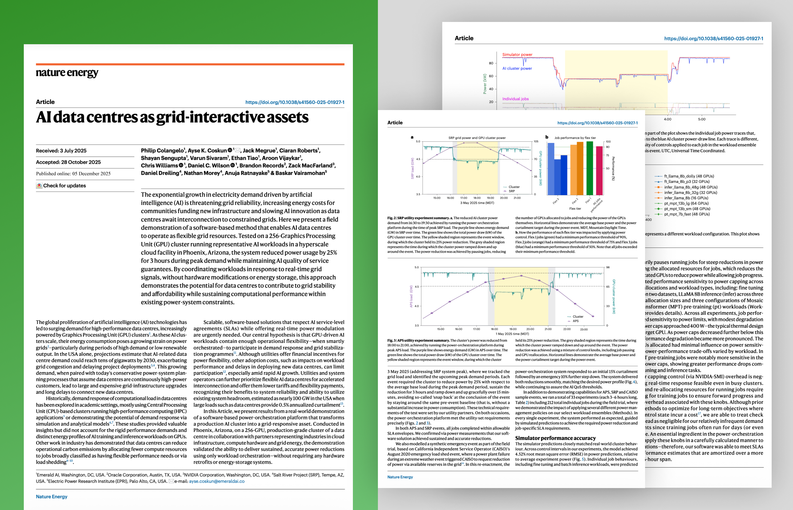 Our Arizona demonstration results were peer-reviewed and accepted in one of the world's top scientific journals, demonstrating the pioneering advances of Emerald's Conductor platform to make AI data centers flexible, reliable partners to the grid.